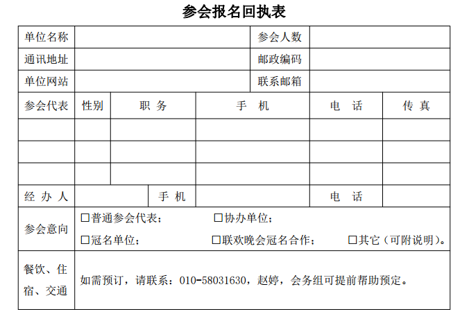 1、參會單位填寫此表并與匯款憑證一起傳真至 010—58031630,或電郵:1113750636@qq.com,聯系人:趙婷