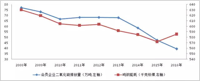 ▲ 圖5 鋼鐵協會會員企業(yè)二氧化硫排放量及噸鋼綜合能耗