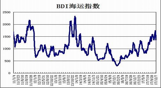 2017年波羅的海干散貨海運指數延續反彈,但海運市場依然在不斷調整中尋求利潤源泉,總體而言海運行業產能過剩的情況并沒有得到大的轉變,數據顯示BDI指數由年初953反彈至12月底1366,漲幅超40%。2017年以來,全球經濟回暖,國際市場需求總體回升,中國經濟穩中有進、穩中向好態勢持續發展,外貿發展面臨的國內外環境有所改善。從國際市場看,中國對美國、歐盟、日本等傳統市場出口均有增長。同時,中國對巴西、俄羅斯、印度、南非、馬來西亞等金磚國家和“一帶一路”沿線國家出口快速增長,其中對巴西出口增幅甚至達到近四成。