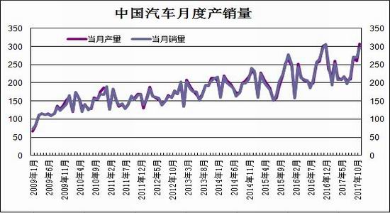 2017年前11個月中國汽車產銷總體穩中有升,但增速較去年同期放緩。據統計數據顯示,2017年1-11月中國汽車銷量為2588.14萬輛,同比增長4%,全年汽車總銷量仍將超過2700萬輛;1-11月中國汽車產量達2603.17萬輛,同比增幅4%。2017年對于中國汽車市場或是一個轉折點,中國汽車市場在2008年為起步發展期,然后穩步增長,從2009年到2016年這段快速普及期,整個增速非常快。2017年全年同比增速放緩至5%下方,這也預示著中國的汽車市場進入了一個逐漸飽和的時期。2018年還有一個重要的因素就是購置稅優惠退坡的影響量。2017年受到購置稅的影響有120萬輛,2018年市場預計會有180萬輛的影響。預計在2018年1~3月份購車的消費者會提前到2017年購車。綜合所有的因素,我們看到購置稅是最大的影響因素,其他方面