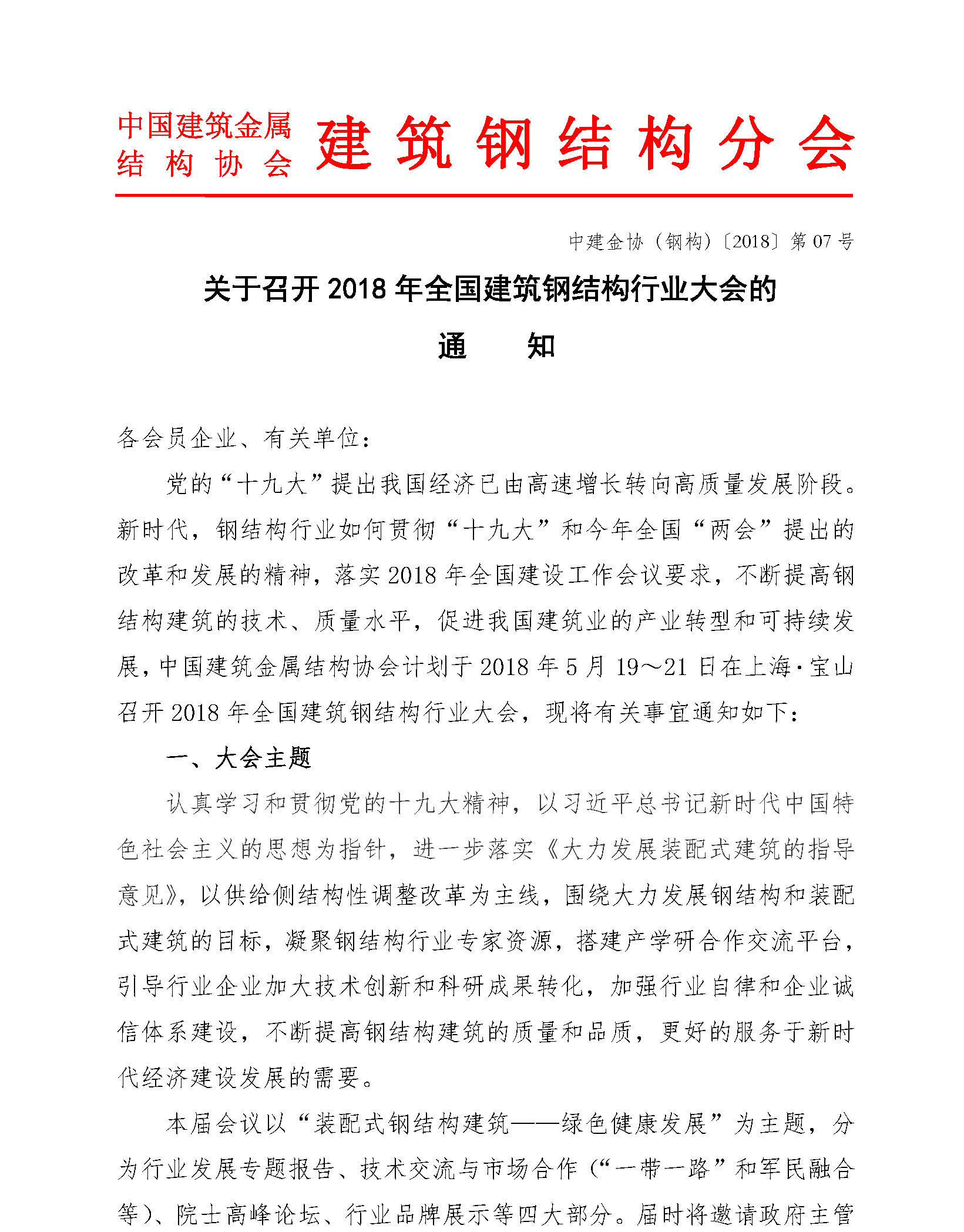 關于召開2018年全國建筑鋼結構行業大會的通知
