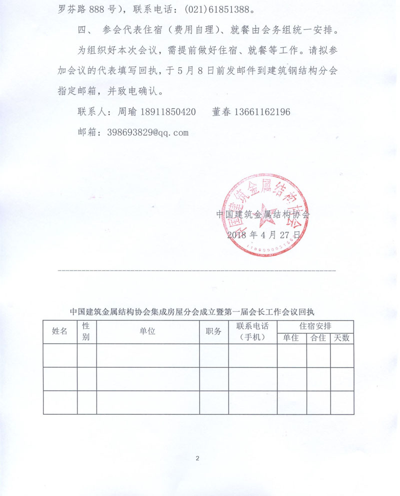 主頁 > 新聞中心 > 行業動態 > 關于召開中國建筑金屬結構協會集成房屋分會成立暨第一次會長工作會議通知