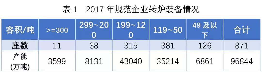 我國規(guī)范企業(yè)轉(zhuǎn)爐裝備情況見表1,電爐裝備情況見表2。