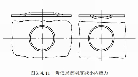 在焊接封閉焊縫或其他剛性較大,自由度較小的焊縫時,可以采用反變形法來增加焊縫的自由度,減小焊接應(yīng)力,如下圖3.4.11所示。