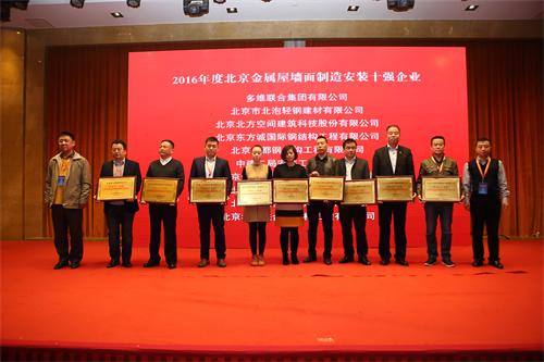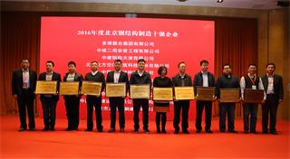 會上,頒發了“2016年度北京鋼結構制造十強企業”、“2016年度北京鋼結構制造安裝十強企業”、“2016年度北京金屬屋墻面制造安裝十強企業”、“2016年度北京集成與模塊化房屋制造安裝十強企業”和“北京鋼結構金獎”、“北京鋼結構科技獎”等獎項。