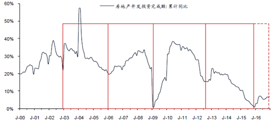 歷史上看,一旦PPI 季度同比達到6%以上,固定資產投資價格指數也基本上在同樣的位置。這里PPI 季度同比我們采用了三個月平均值。可見即使一季度維持目前這樣的高度,扣除物價因素后實際投資效果也會打折扣。商品房銷售也有很強的規律,一般3 到4 年,從時間上講,正處于下降通道,這與今年的信貸增速相一致。