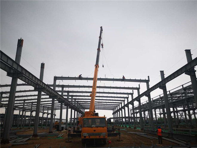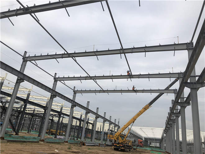 鋼結(jié)構(gòu)廠房在建項(xiàng)目名稱:吉利鋼結(jié)構(gòu)廠房主梁吊裝及墻面檁條安裝